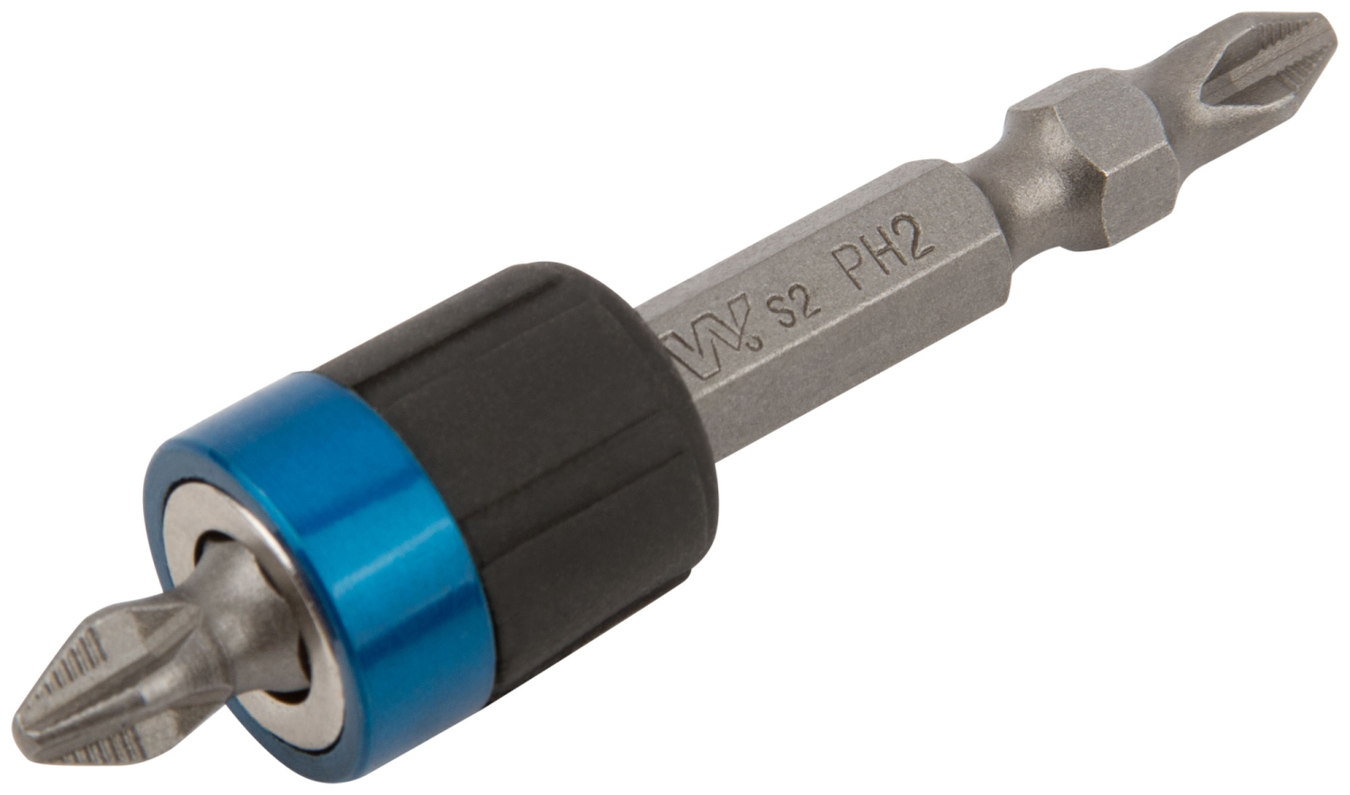 WP. Профи. Облегчает закручивание шурупа. С магнитным фиксатором для быстрой смены бит + 1 двухсторонняя бита длиной 65 мм (PH2) с насечками, сталь S2. Упаковка: блистер.