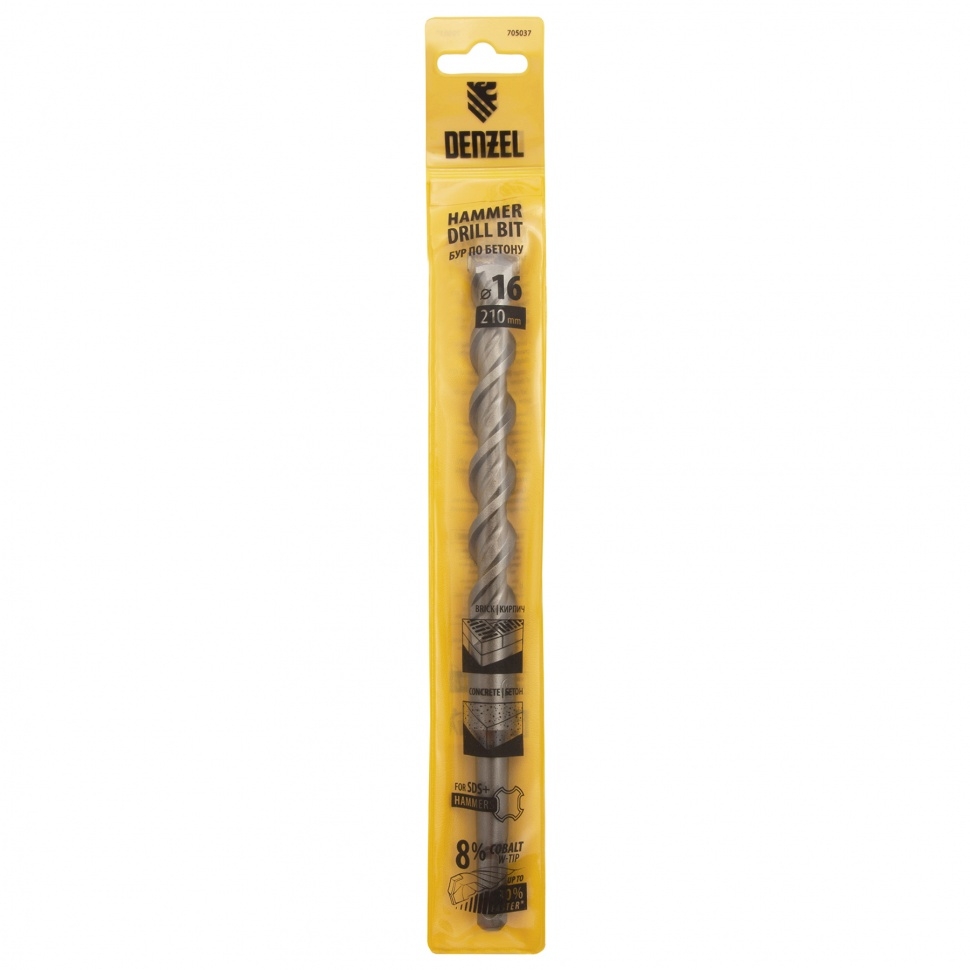 Бур по бетону Cobalt W-tip, двойная спираль, SDS-Plus, 16х210 мм Denzel