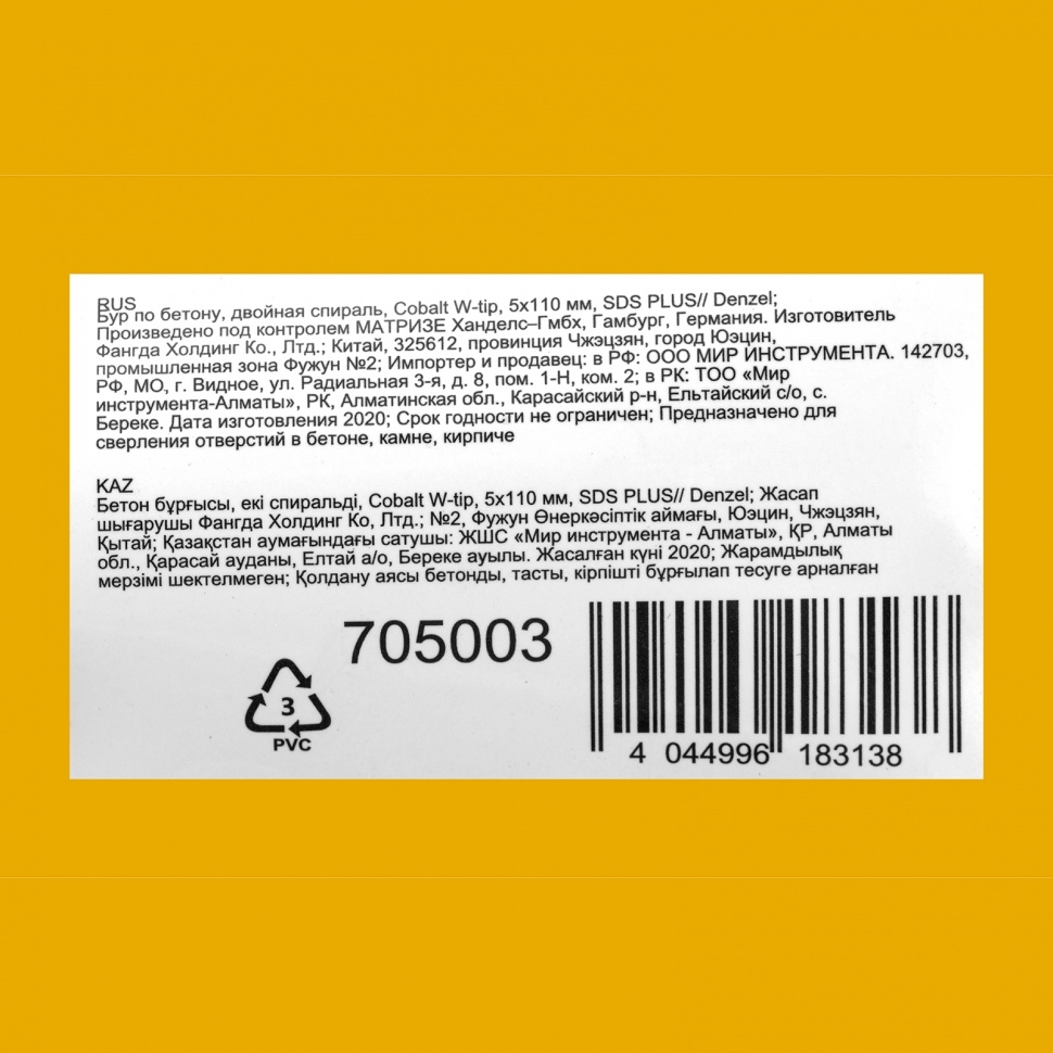 Бур по бетону Cobalt W-tip, двойная спираль, SDS-Plus, 5х110 мм Denzel
