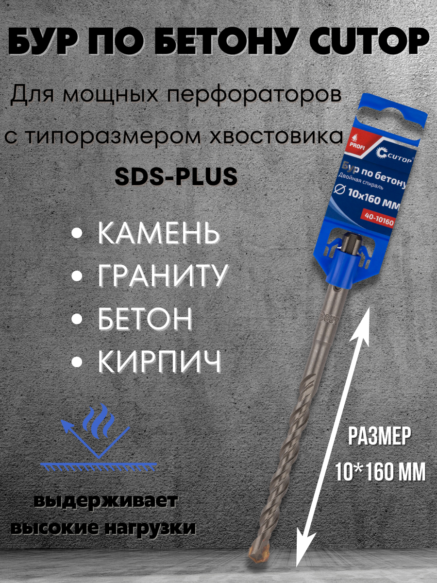 Бур по бетону CUTOP, Profi, двойная резьба, SDS-Plus, 10х160 мм
