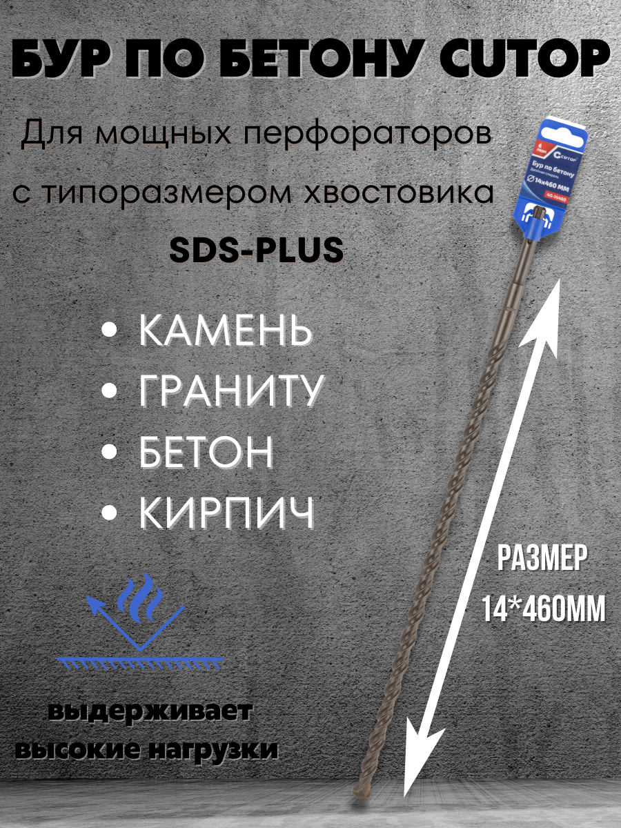 Бур по бетону CUTOP, Profi, двойная резьба, SDS-Plus, 14х460 мм