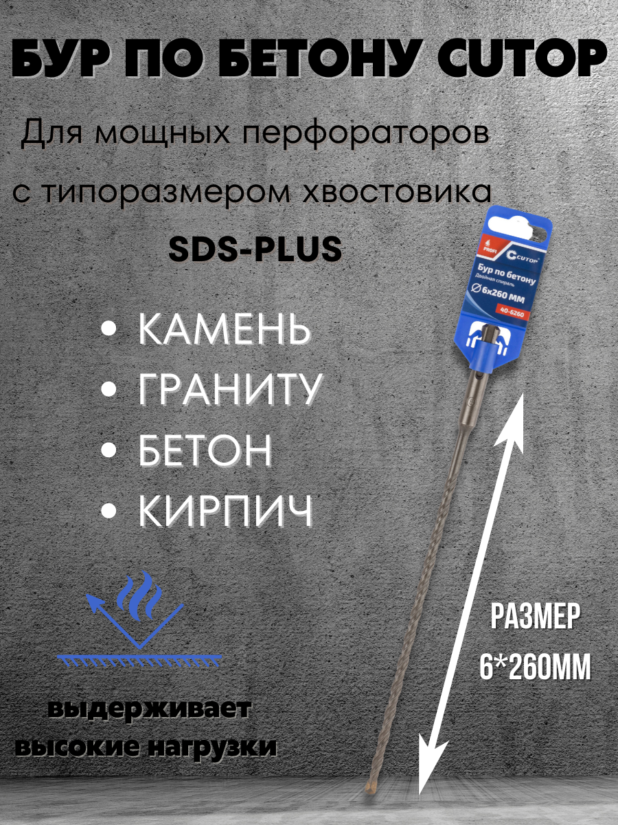 Бур по бетону CUTOP, Profi, двойная резьба, SDS-Plus, 6х260 мм