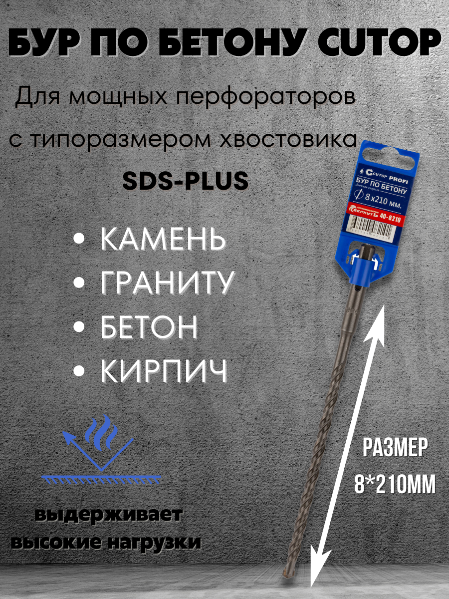 Бур по бетону CUTOP, Profi, двойная резьба, SDS-Plus, 10х210 мм 40-10210 1 шт.