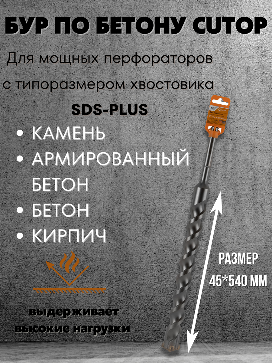 Бур по бетону CUTOP, Profi Plus, с крестовым наконечником, SDS-Max, 45х540 мм