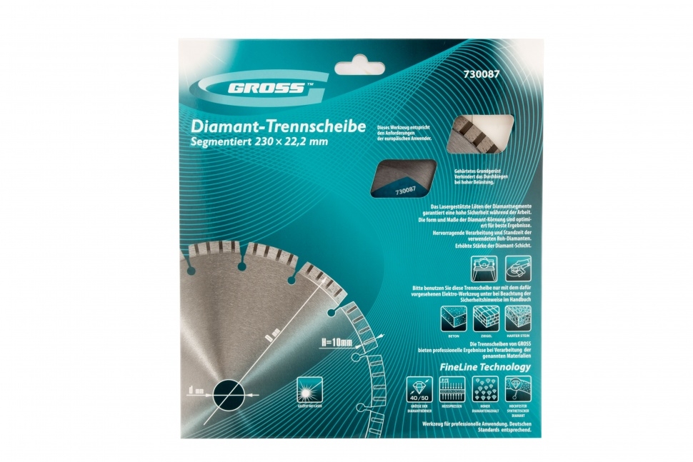 Диск алмазный лазерная приварка турбо-сегментов сухое резание 230х22,2 мм Gross