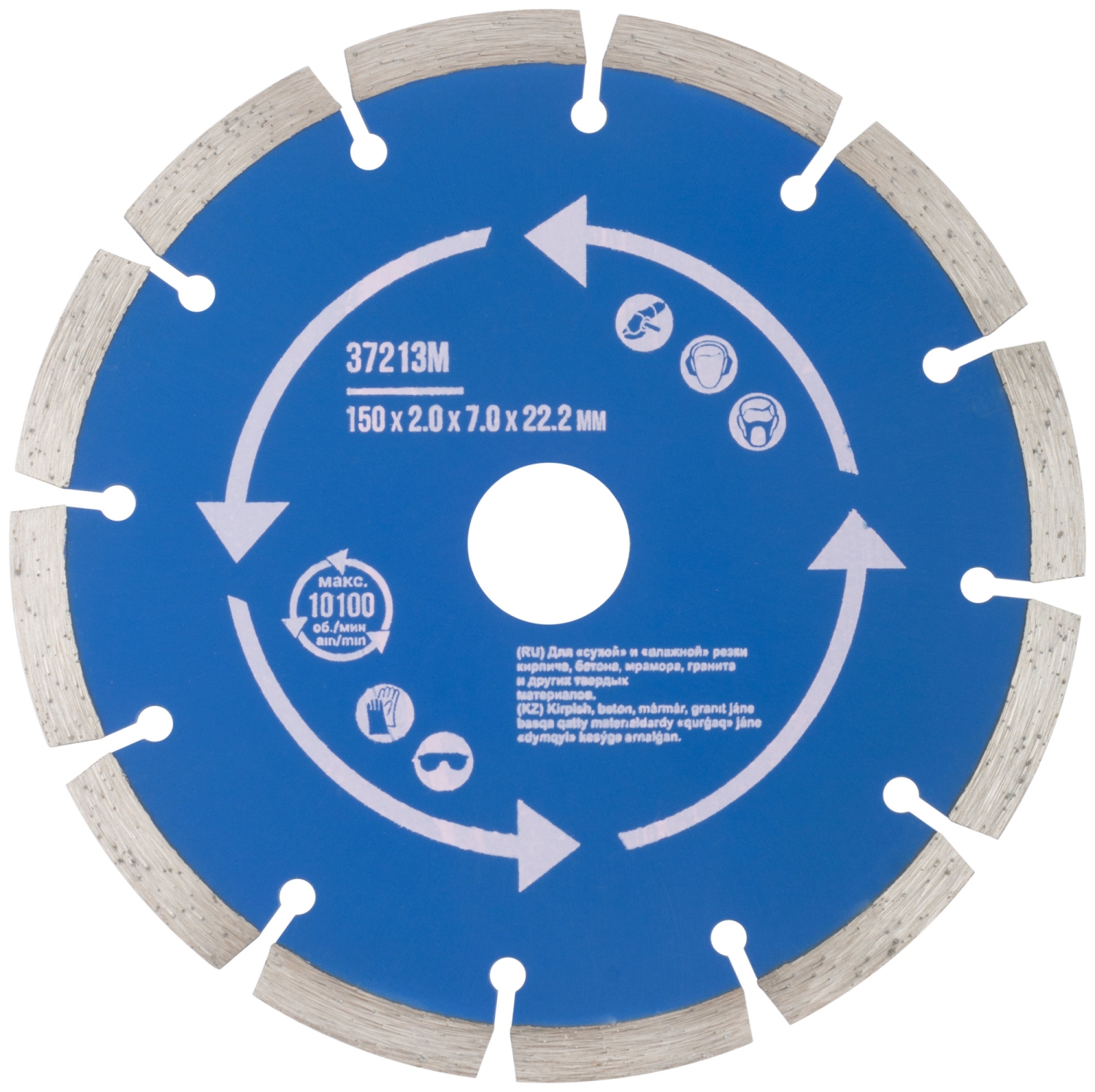 Сегментный. Для использования с УШМ . Посадочный диаметр 22,2мм. Для "сухой" и "влажной"резки кирпича, бетона, мрамора,гранита и других твердых материалов. Сегментная режущая кромка обеспечивает охлаждение диска в процессе работы, предотвращая его перегрев. Материал: инструментальная сталь, режущая кромка-расплав с техническими алмазами. Уп: Блистер