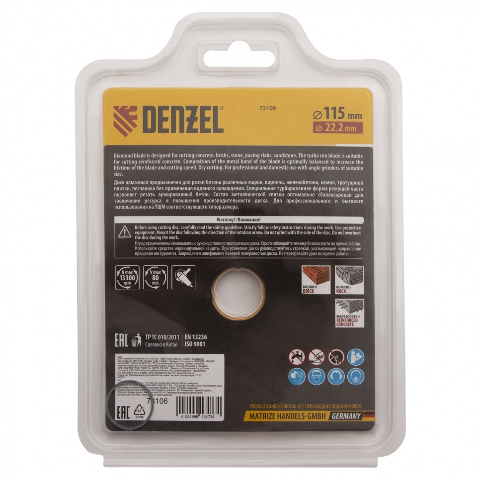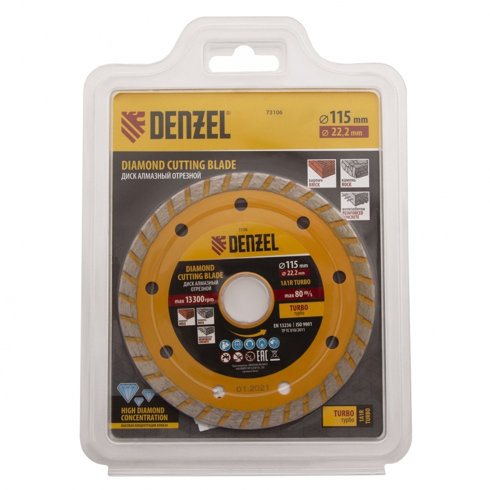 Диск отрезной алмазный сегментный турбо сухое резание 115х22,2 мм Denzel