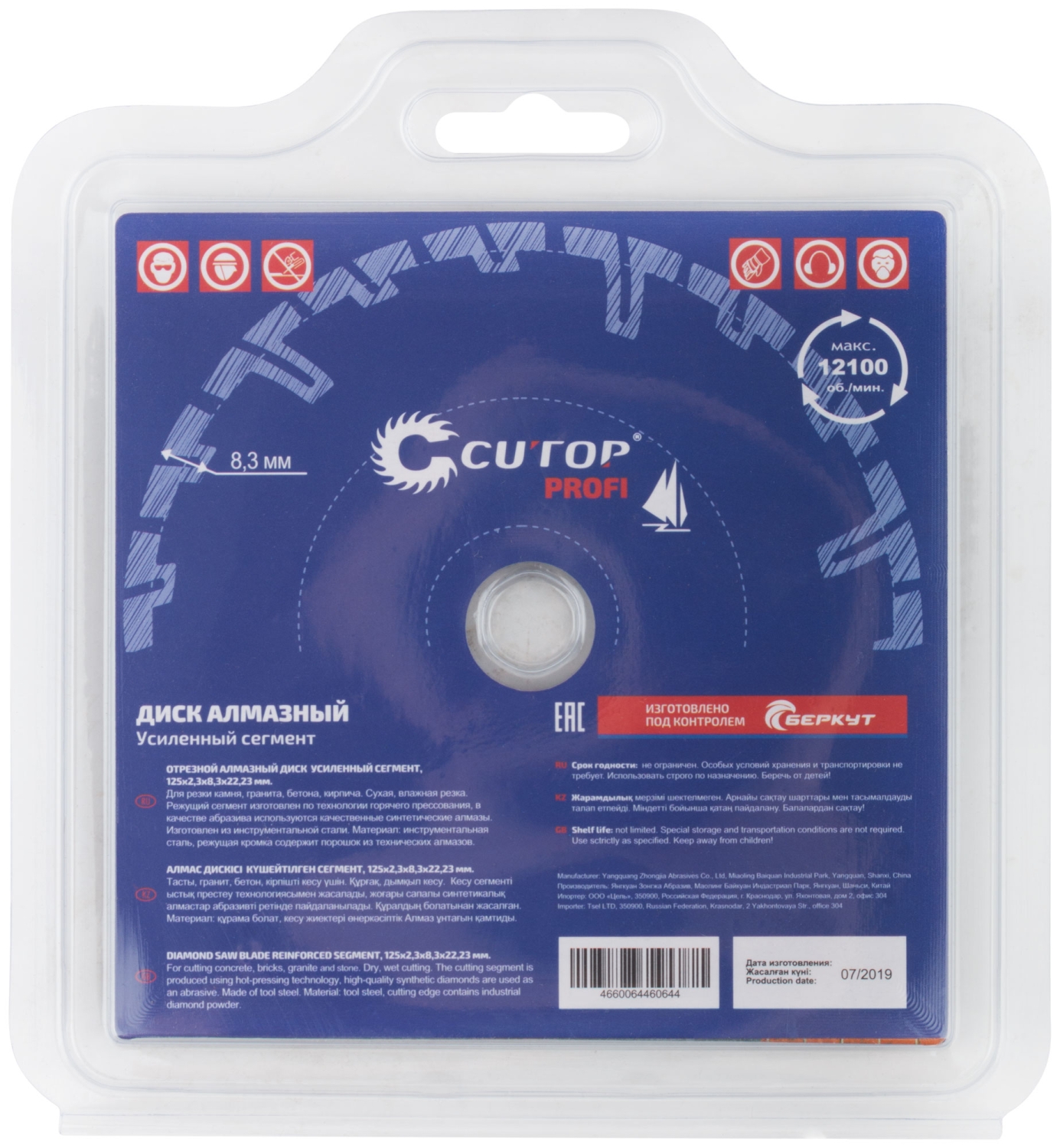 | Диск отрезной алмазный сегментный усиленный CUTOP 125х2,3х8,3х22,2 мм | 66-12523 | 1 шт. |
