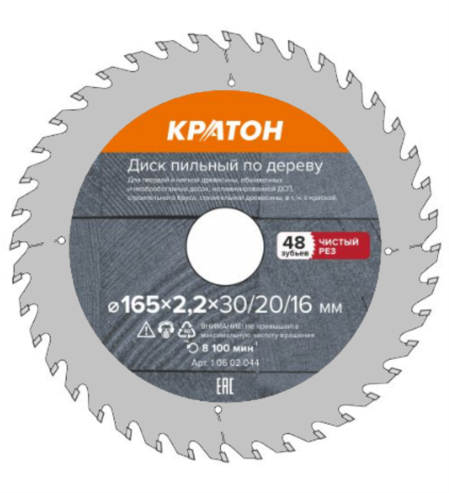 Диск пильный по дереву 165х30/20/16х2,2 мм 48Т чистый рез Кратон