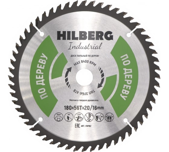 Диск пильный по дереву 180х56Т*20/16 мм Hilberg Industrial