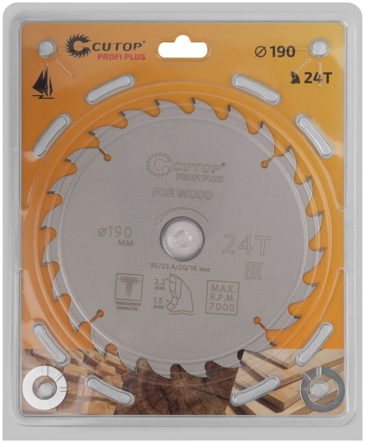 Диск пильный по дереву с тефл.покр.24Т CUTOP Profi Plus 190х1,5/2,2х30/25,4/20/16 мм