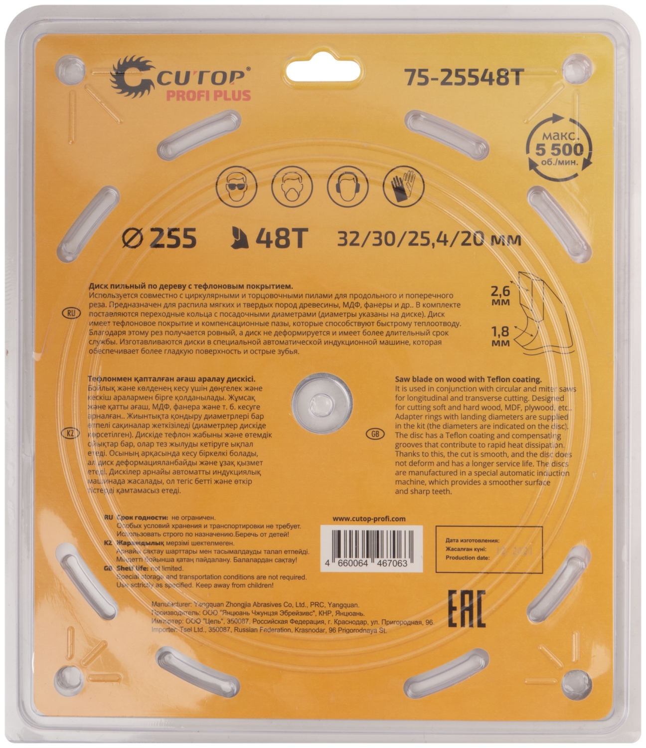 Диск пильный по дереву с тефл.покр.48Т CUTOP Profi Plus 250х1,8/2,6х32/30/25,4/20 мм 75-25048Т 1 шт.