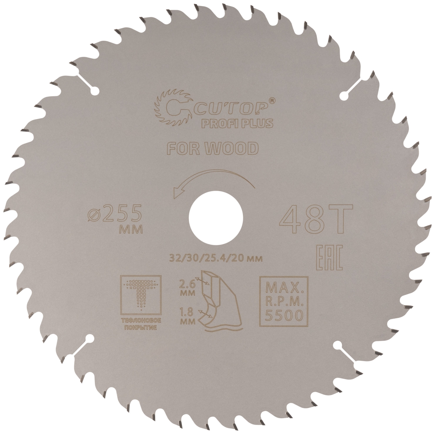 Диск пильный по дереву с тефл.покр.48Т CUTOP Profi Plus 255х1,8/2,6х32/30/25,4/20 мм