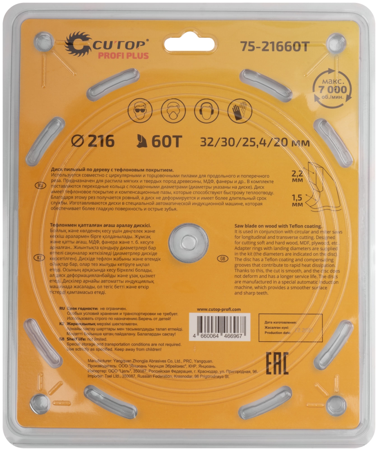 | Диск пильный по дереву с тефл.покр.60Т CUTOP Profi Plus 210х1,5/2,2х32/30/25,4/20 мм | 75-21060Т | 1 шт. |