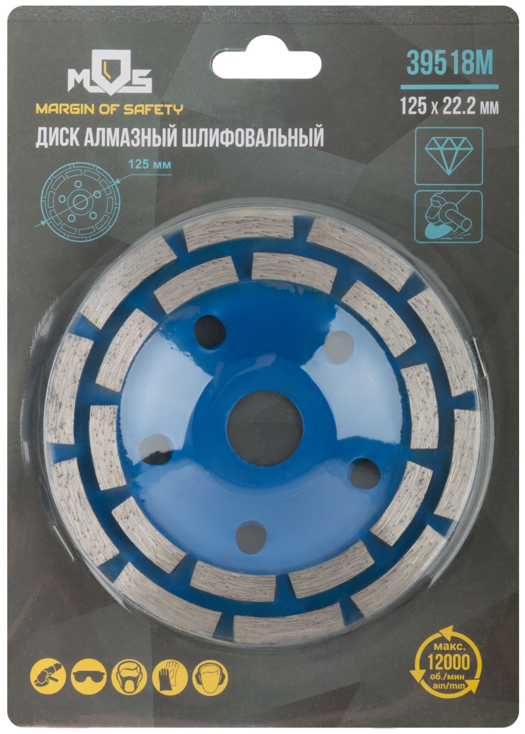 Диск шлифовальный алмазный, посадочн.д.22,2 мм, 2 ряда сегментов 125мм