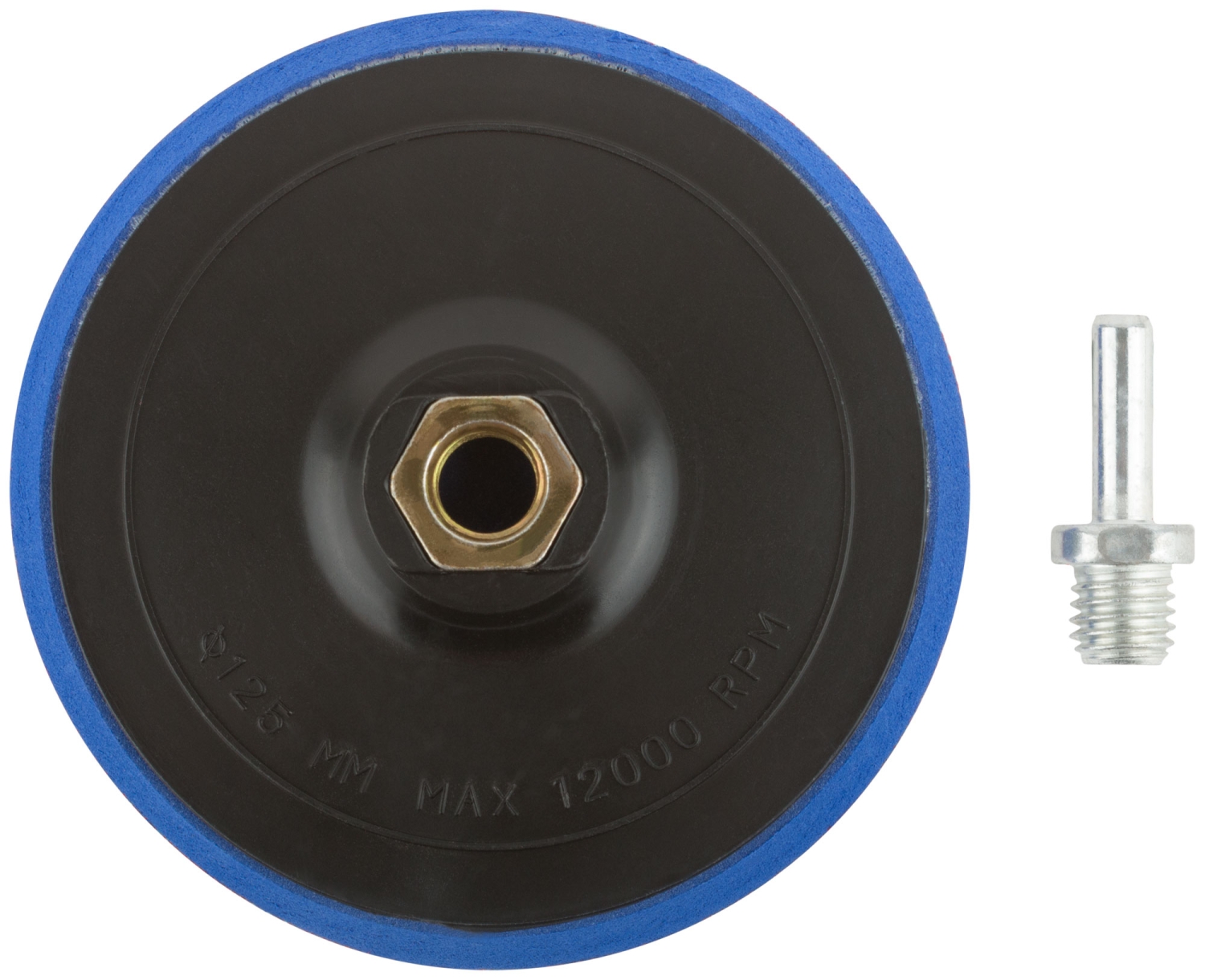 С липучкой. Используется со шлифовальными и<br/>полировальными кругами. Гайка М14 для установки на шлифовальные и отрезные машины. В комплекте переходник со штифтом для крепления<br/>на дрель. Материал: инструментальная сталь,<br/>пластик, подложка из ЭВА.