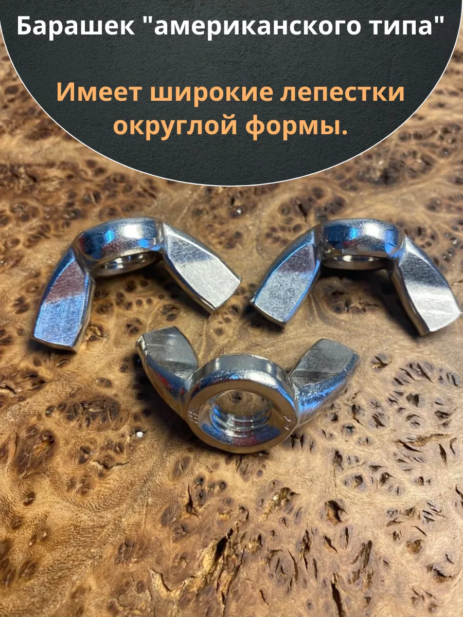 Гайка барашковая нержавеющая М8 DIN315 , 10 шт.