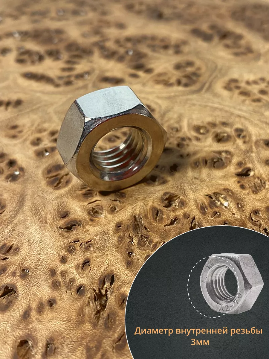 Гайка Нержавеющая М3 DIN 934 А2 шестигранная 50 шт