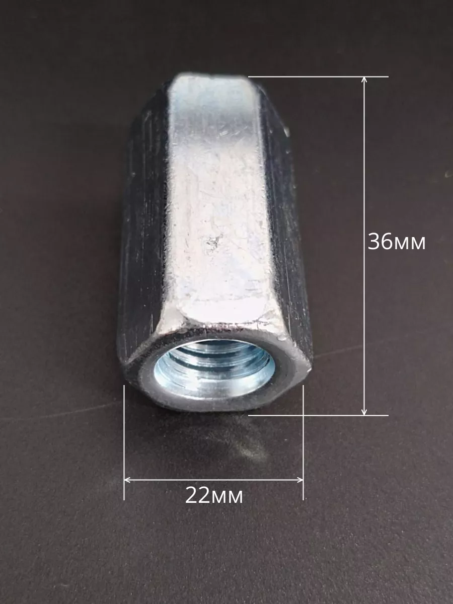 Применяется в качестве соединительной муфты для шпилек и других крепежных деталей с наружной резьбой.