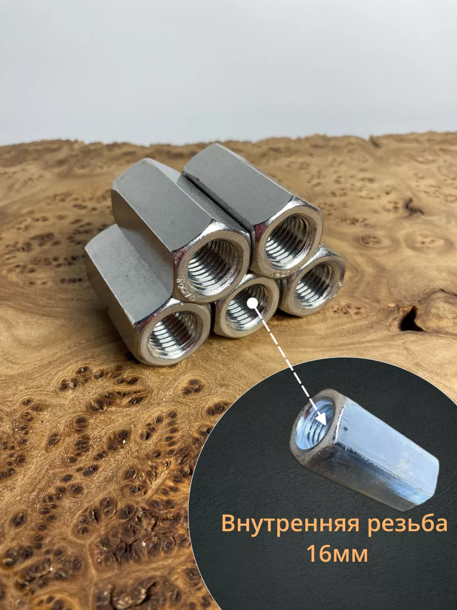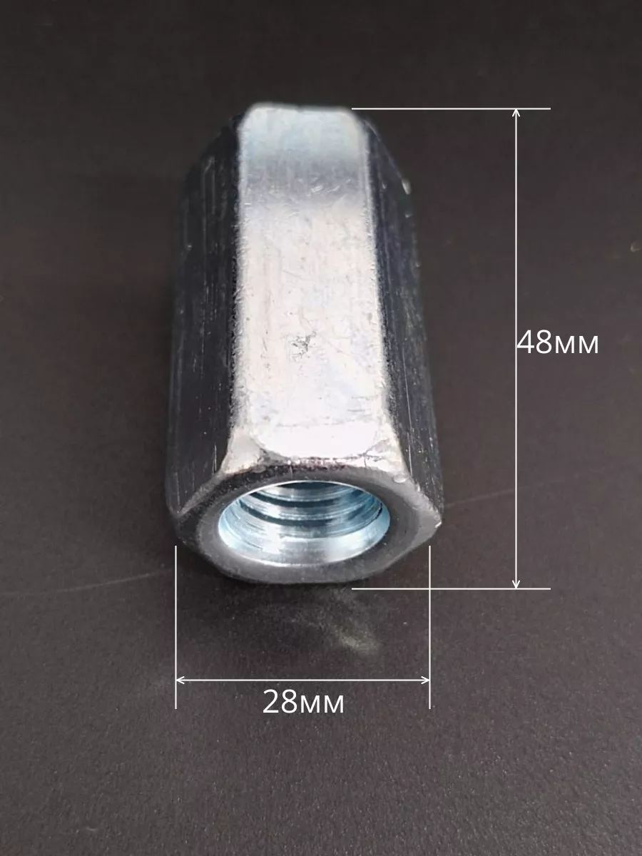 Применяется в качестве соединительной муфты для шпилек и других крепежных деталей с наружной резьбой.