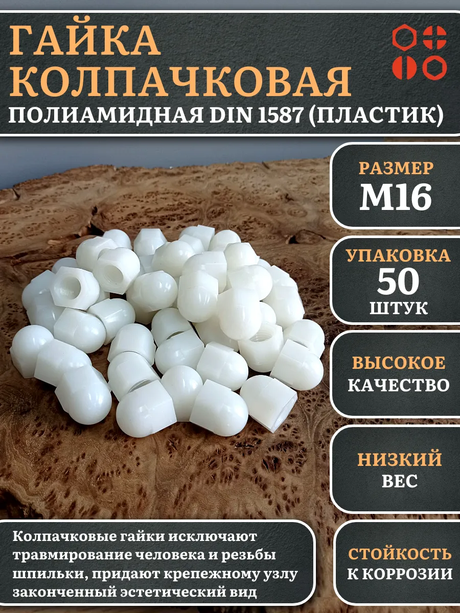 Гайка полиамидная колпачковая (пластик) М16 DIN1587, 50 шт.