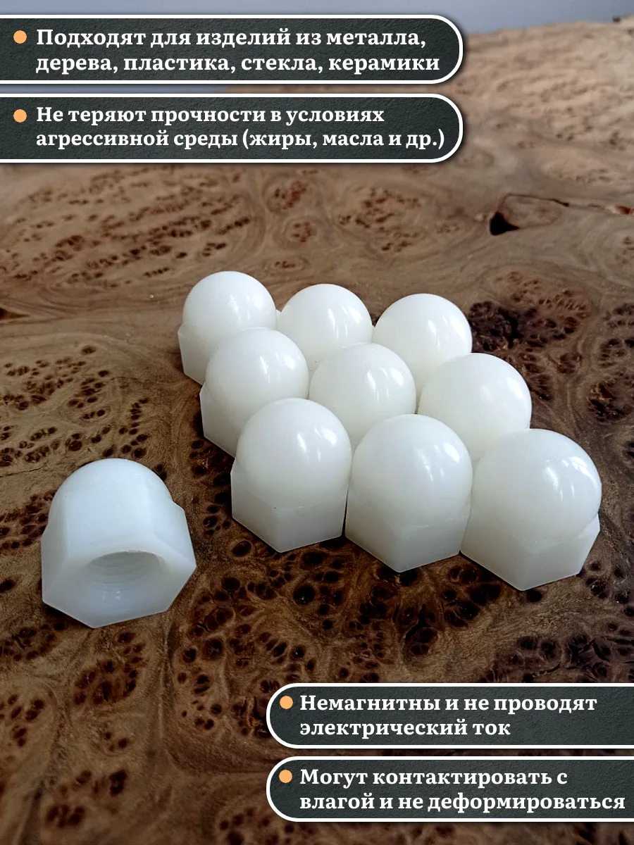 Гайка колпачковая DIN 1587 полиамидная (пластиковая) широко используется в строительстве, машиностроении, приборостроении, сборке габаритной техники и быту. Простая и надежная конструкция делает крепеж универсальным.