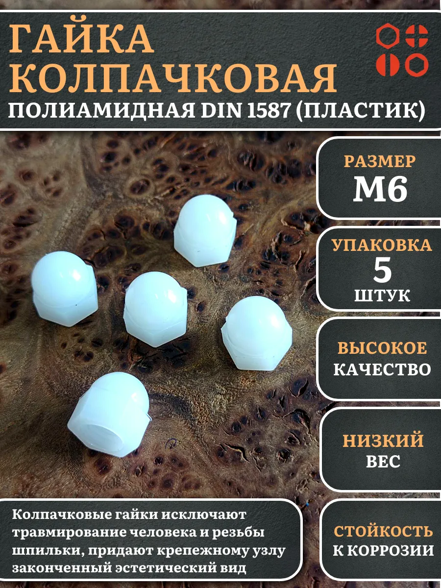 Гайка полиамидная колпачковая (пластик) М6 DIN1587, 5 шт.