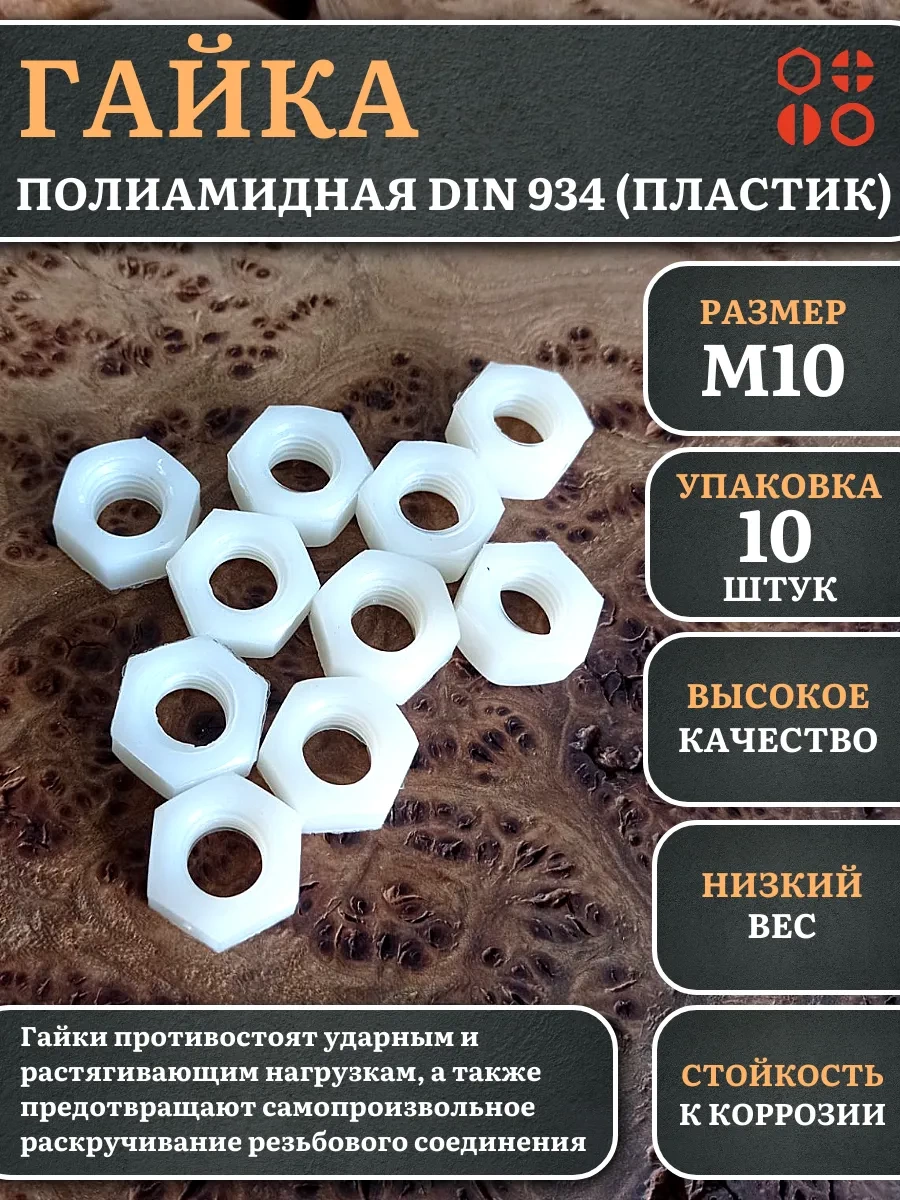 Гайка полиамидная М10 DIN934 (пластик), 10 шт.