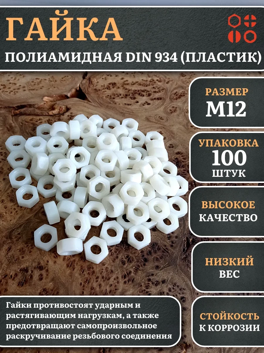 Гайка полиамидная М12 DIN934 (пластик), 100 шт.