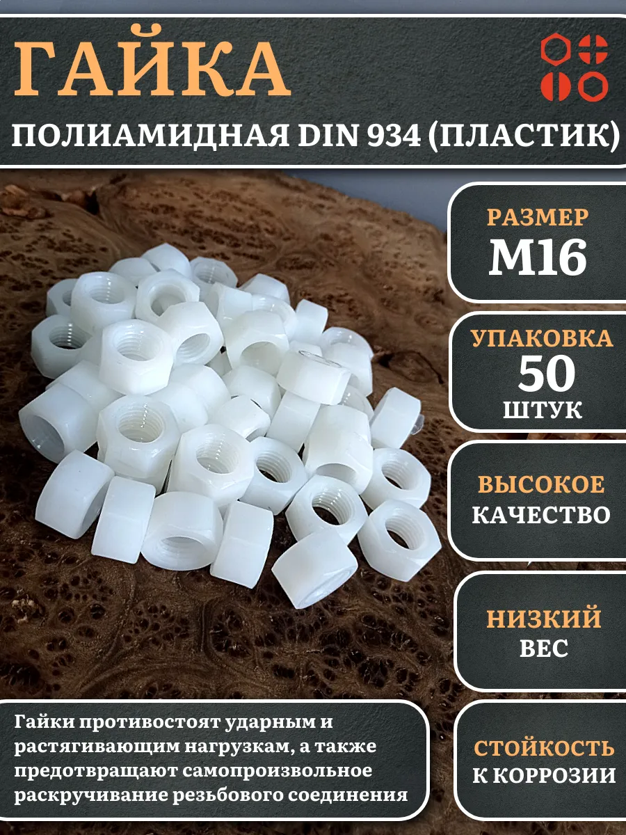 Гайка полиамидная М16 DIN934 (пластик), 50 шт.