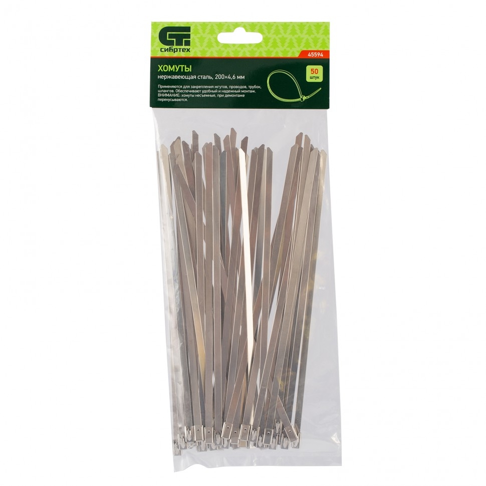 | Хомуты 200х4,6 мм 50 шт. Сибртех, нержавеющая сталь | 45594 | 1 шт. |