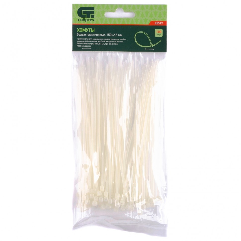 | Хомуты пластиковые белые 160х2,5 мм 100 шт. Сибртех | 45523 | 1 шт. |
