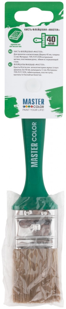 Кисть флейцевая, 70% ПЭТ/30% натур.щетина, пласт.ручка, нерж.обжим, толщ.11мм, шир.40мм