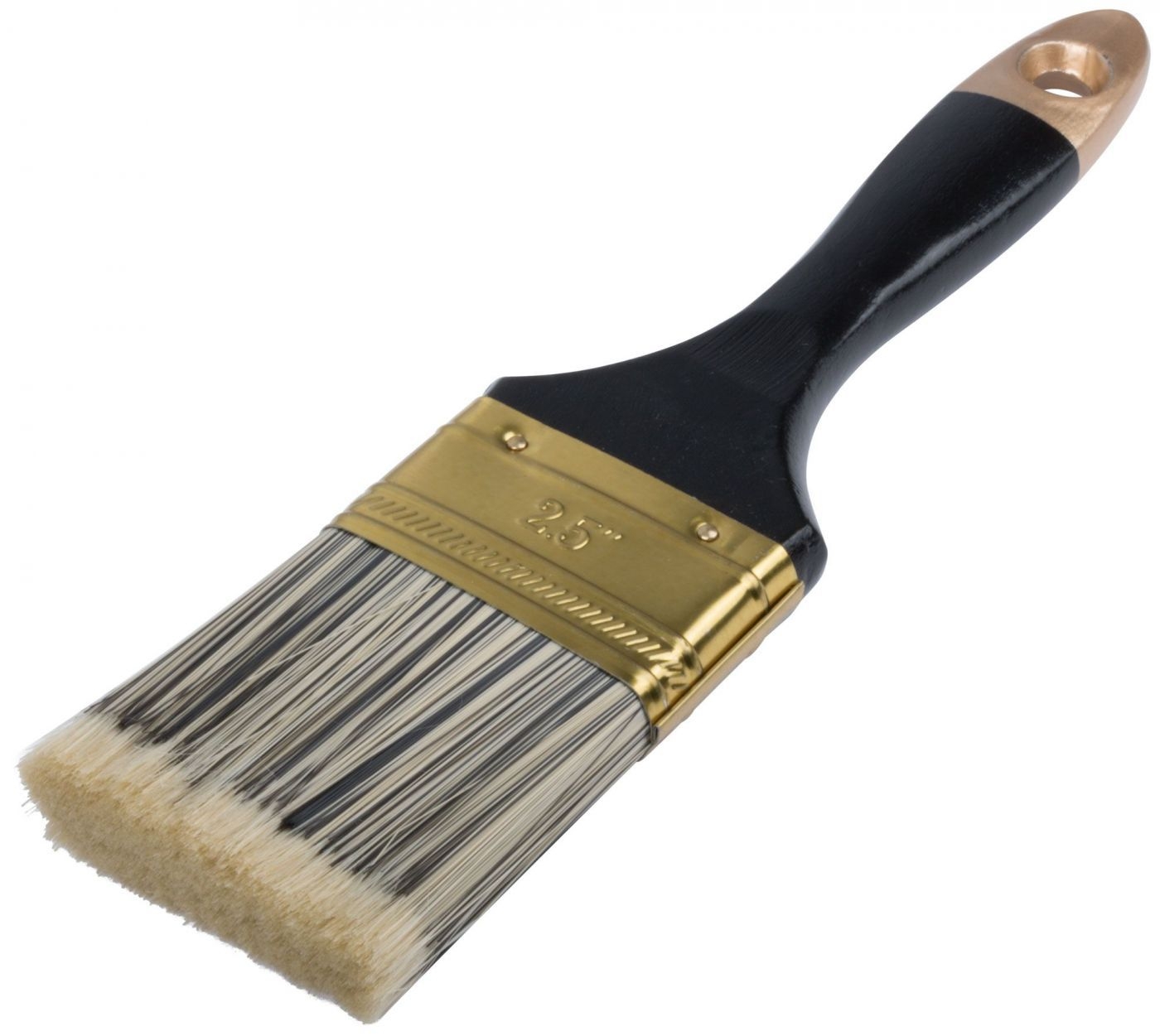 Кисть флейцевая "Стайл", искусственная черно-белая щетина, деревянная ручка 2,5" (63 мм). Для работы с вододисперсионными красками и лаками (кроме нитролаков и нитрокрасок).