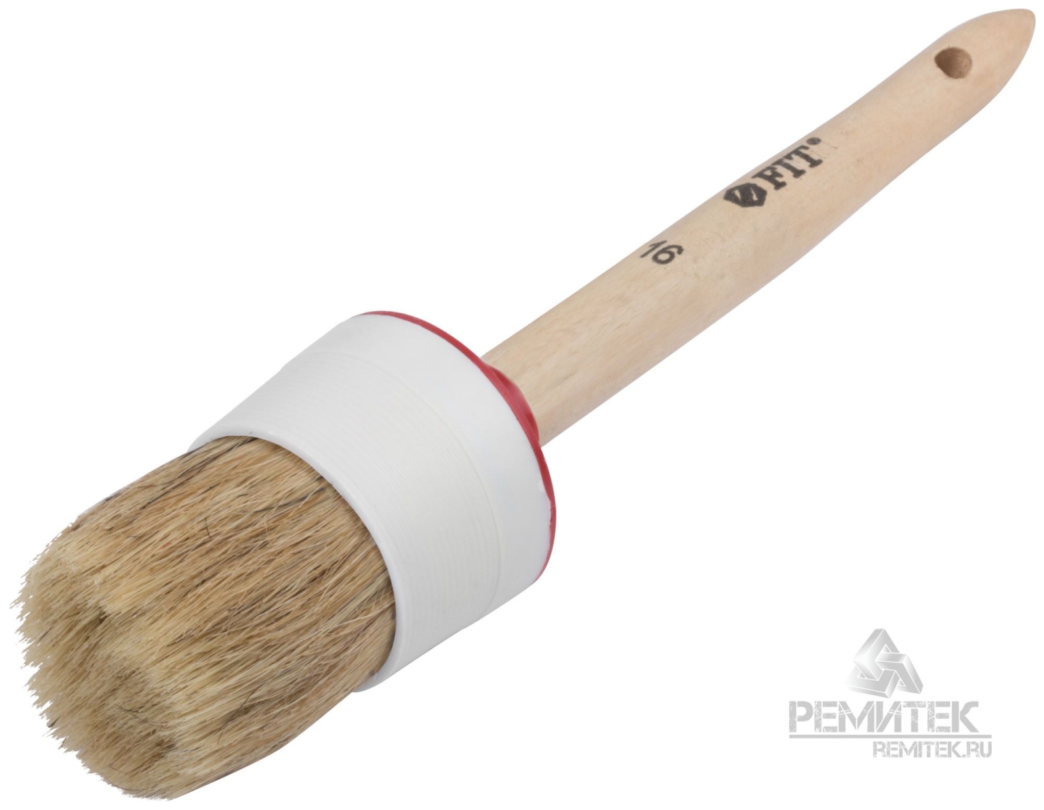 Кисть круглая, натуральная светлая щетина №16 (55 мм). Для работы со всеми видами лакокрасочных материалов. Натуральная светлая щетина, пластиковый корпус, деревянная ручка.