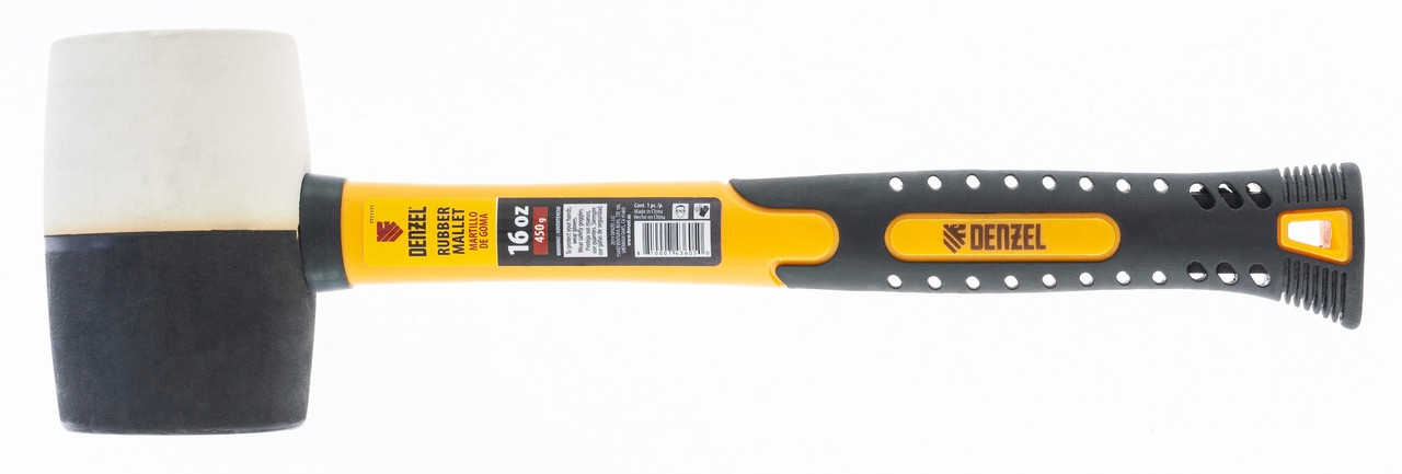 Киянка резиновая черно-белая, фиберглассовая ручка 16 oz Denzel