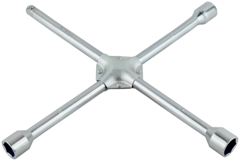 Усиленный. Для монтажа колёс. Дополнительная посадочная поверхность под насадку-головку на 1/2’’ позволяет использовать ключ при любом авторемонте. Материал: инструментальная сталь.