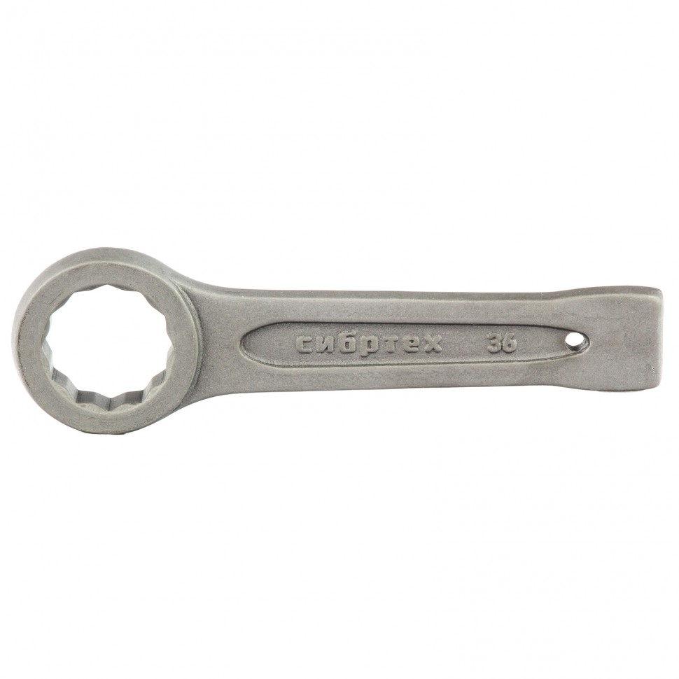 Ключ кольцевой ударный Сибртех 14275 позволяет откручивать и закручивать резьбовые соединения размером 36 мм. Благодаря 12-гранному профилю надежно удерживает головку крепежа. Удобен для работы в ограниченном пространстве — для перестановки его достаточно повернуть на 30°. Инструмент применяется в слесарных мастерских, будет полезен во время ремонта, а также для решения бытовых задач. Эффективная работа с туго затянутым крепежом — одна сторона ключа утолщена и предназначена для ударных воздействий.