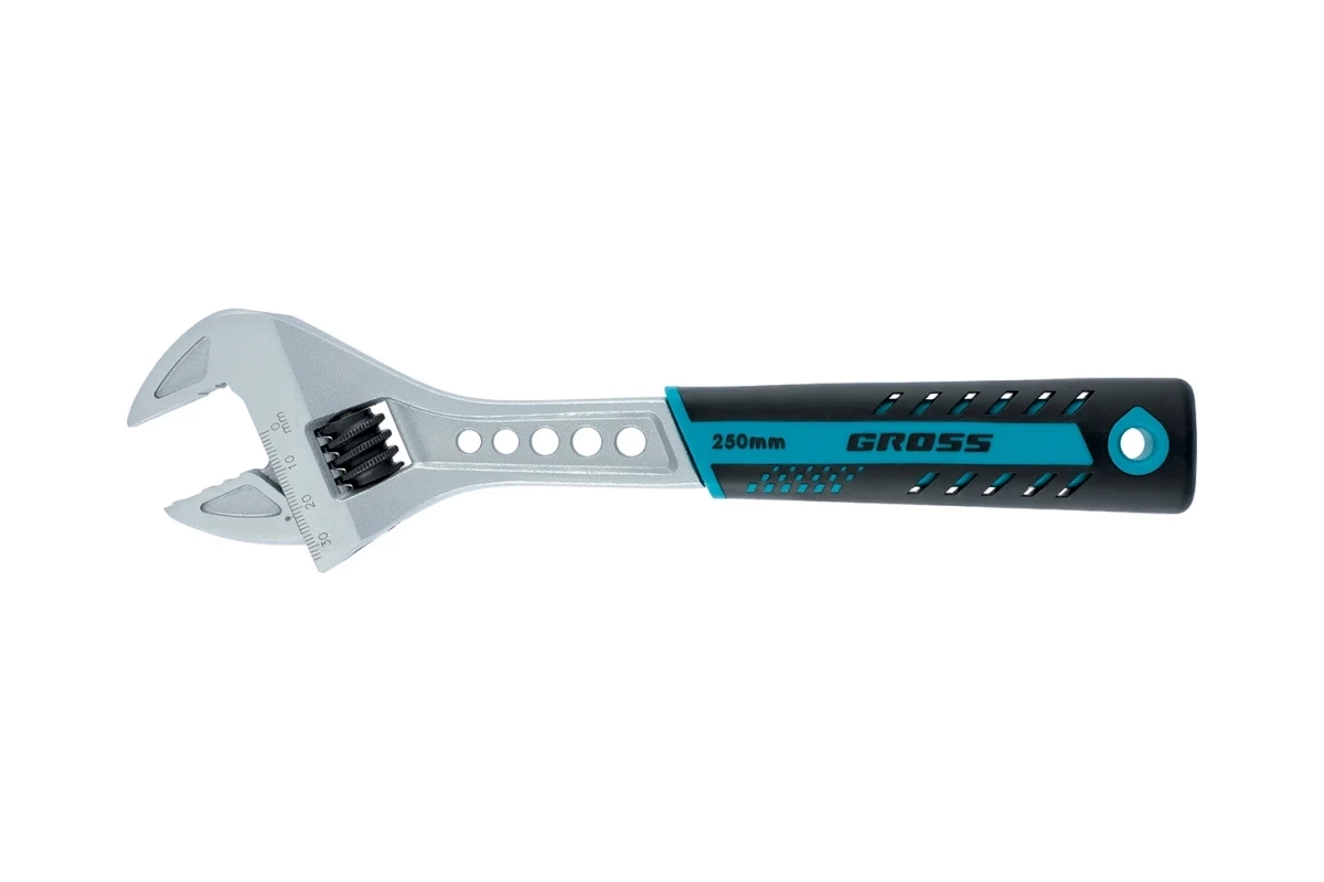 Ключ разводной 250 мм CrV двухкомпонентные рукоятки Gross