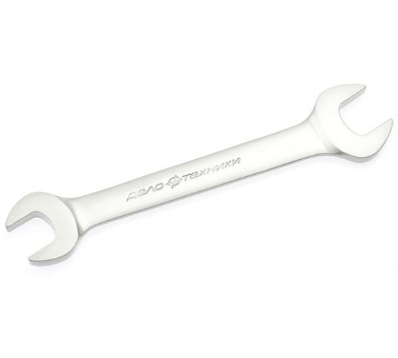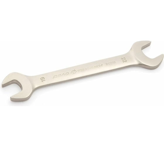 Рожковый ключ Дело Техники 19x22 мм 510229 применяется для самых разнообразных работ. Открытый зев дает возможность работы в том случае, когда доступ к крепежу возможен лишь с одной стороны. При работе рожковый профиль оставляет крепежную деталь открытой для обзора. Угол наклона рожковой части относительно продольной оси тела ключа — 15°, что позволяет довести минимальный угловой шаг при работе в труднодоступных местах до 30°.Ключ выполнен из качественной стали 6140CrV с твердостью 44-48 HRC. Никелированное покрытие обеспечивает защиту от коррозии и долгий срок службы.