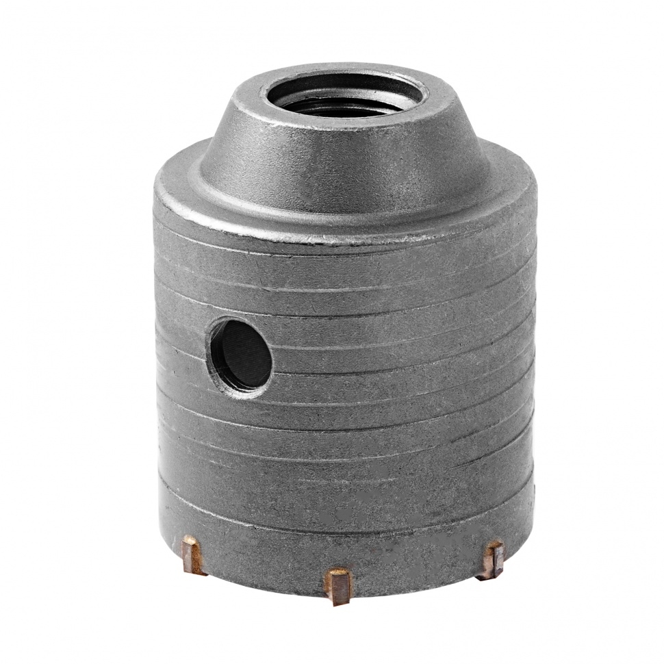 Буровая коронка Matrix 70379 с посадкой M22, диаметром 68 мм, рассчитана на сверление отверстий в бетоне, кирпиче, граните, природном и искусственном камне. Устанавливается на ударные дрели или перфораторы с патронами под хвостовик SDS-Plus или SDS-Max. Коронка позволяет получить большие отверстия, поэтому пригодится для монтажа розеток, выключателей и прокладки труб.
