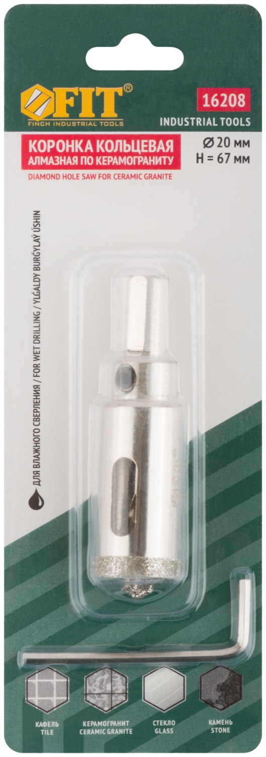 | Коронка по керамограниту, камню и кафелю кольцев с центров сверлом 20х67 мм | 16208 | 1 шт. |
