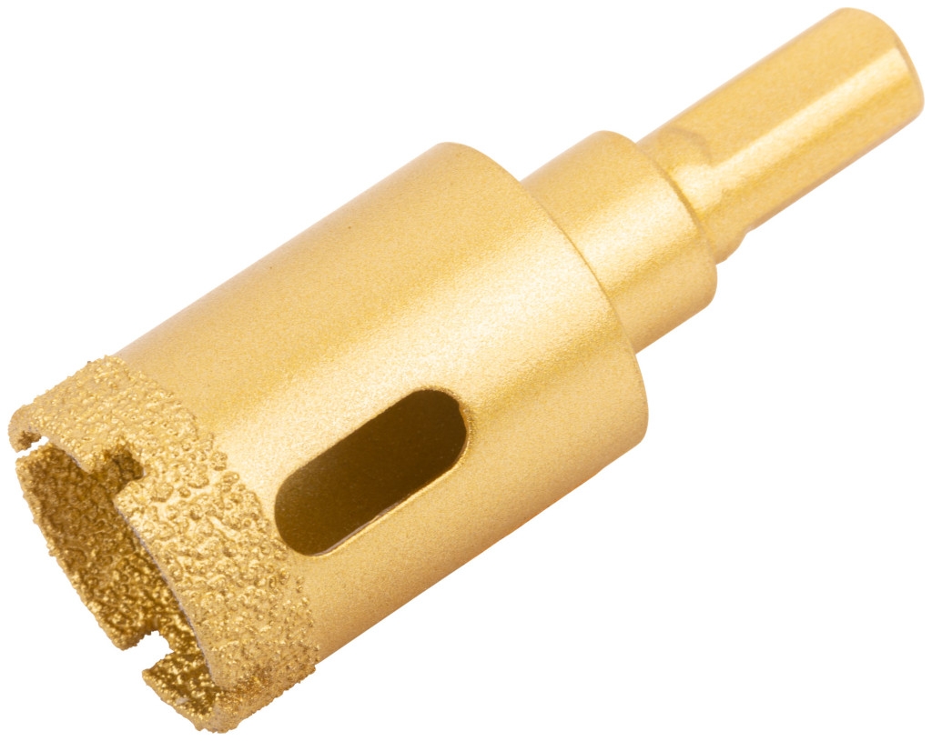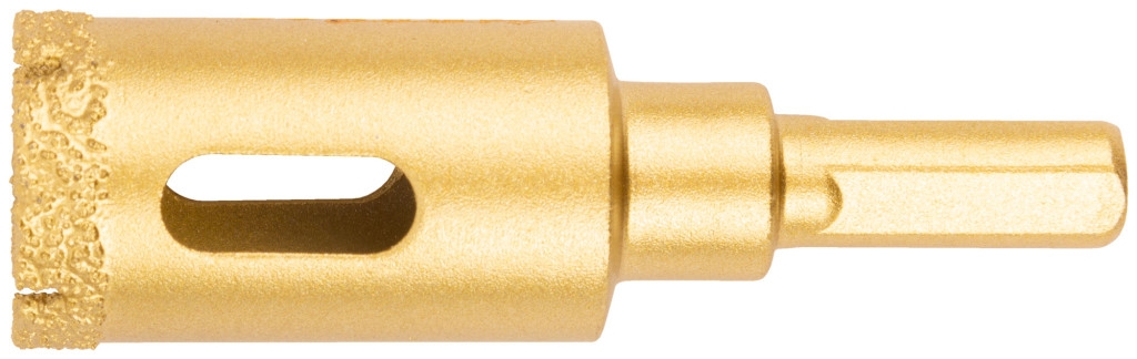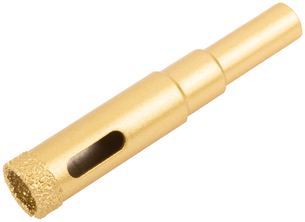 Профи. 16301-16306: цилиндрический хвостовик, 16308-16310: трехгранный хвостовик. Для вырезания круговых отверстий в керамограните, кафельной плитке, бетоне, граните, мраморе, камне, кирпиче и стекле. Влажное сверление. Глубина пропила 35 мм. Материал: инструментальная сталь, режущая кромка содержит порошок из технических алмазов. Упаковка: блистер. Предназначена для вырезания круглых отверстий в керамограните, камне, стекле, кафельной плитке. Влажное сверление. Глубина пропила — 35 мм. Высокая концентрация алмазного зерна обеспечивает износостойкость и длительный ресурс коронок. Чистый рез без сколов достигается за счет мелкого размера алмазных частиц. Отверстия в корпусе коронок способствуют эффективному охлаждению и отводу шлама. Цилиндрический хвостовик совместим с большинством патронов электроинструмента.