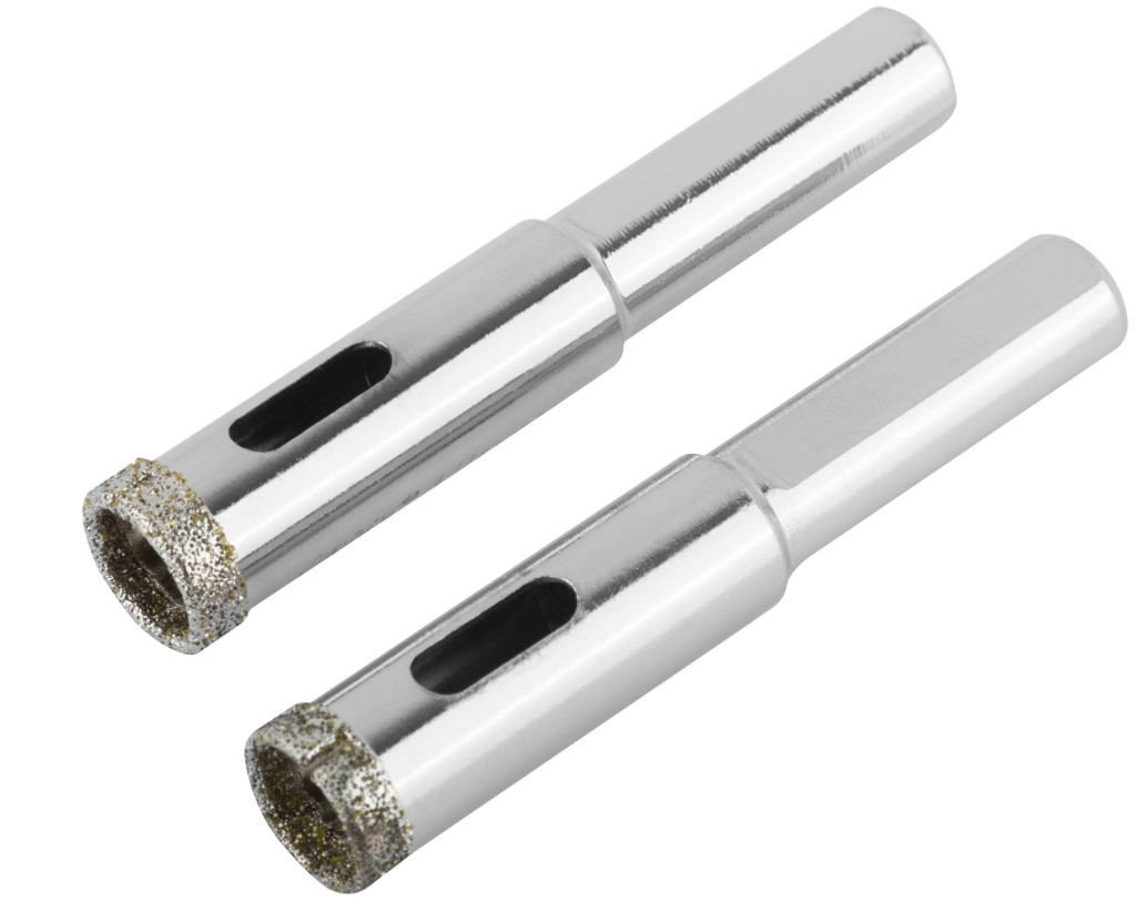 Коронки кольцевые по керамограниту, камню и кафелю алмазные, набор 2 шт., 12х65 мм