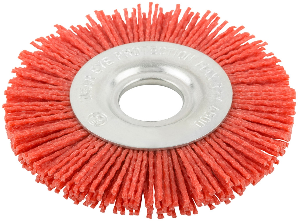 Корщетка-колесо нейлоновая, посадочный диаметр 22,2 мм, Профи 100 мм. Тип «колесо». Нейлоновая. Для УШМ. Посадочный диаметр 22,2 мм. Для браширования древесины, удаления заусенцев, загрязнений и полировальных работ по дереву, пластику, стали и цветным металлам. Материал: нейлон, алюминий-оксидный абразив, основа из инструментальной стали. Упаковка: картонная коробка.