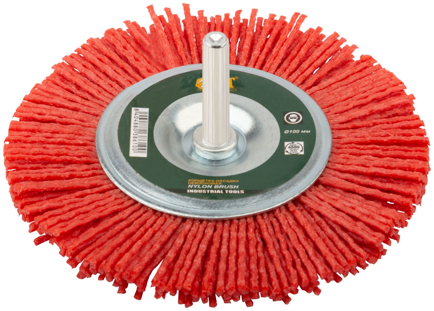Корщетка-колесо, со штифтом, нейлоновая 100 мм