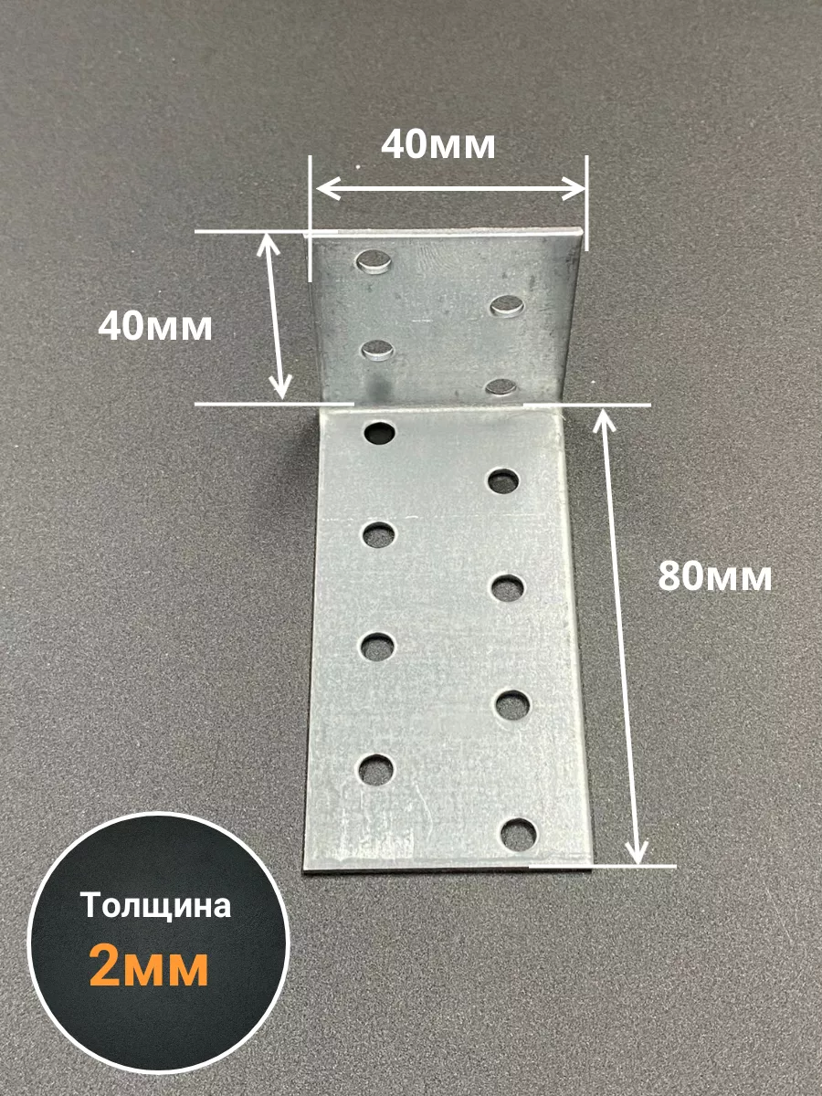 Крепежный анкерный уголок 40х80х40 ОЦ, 10 шт.