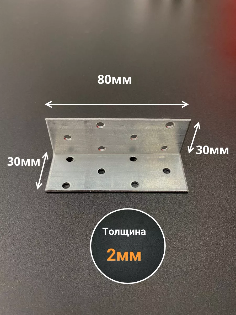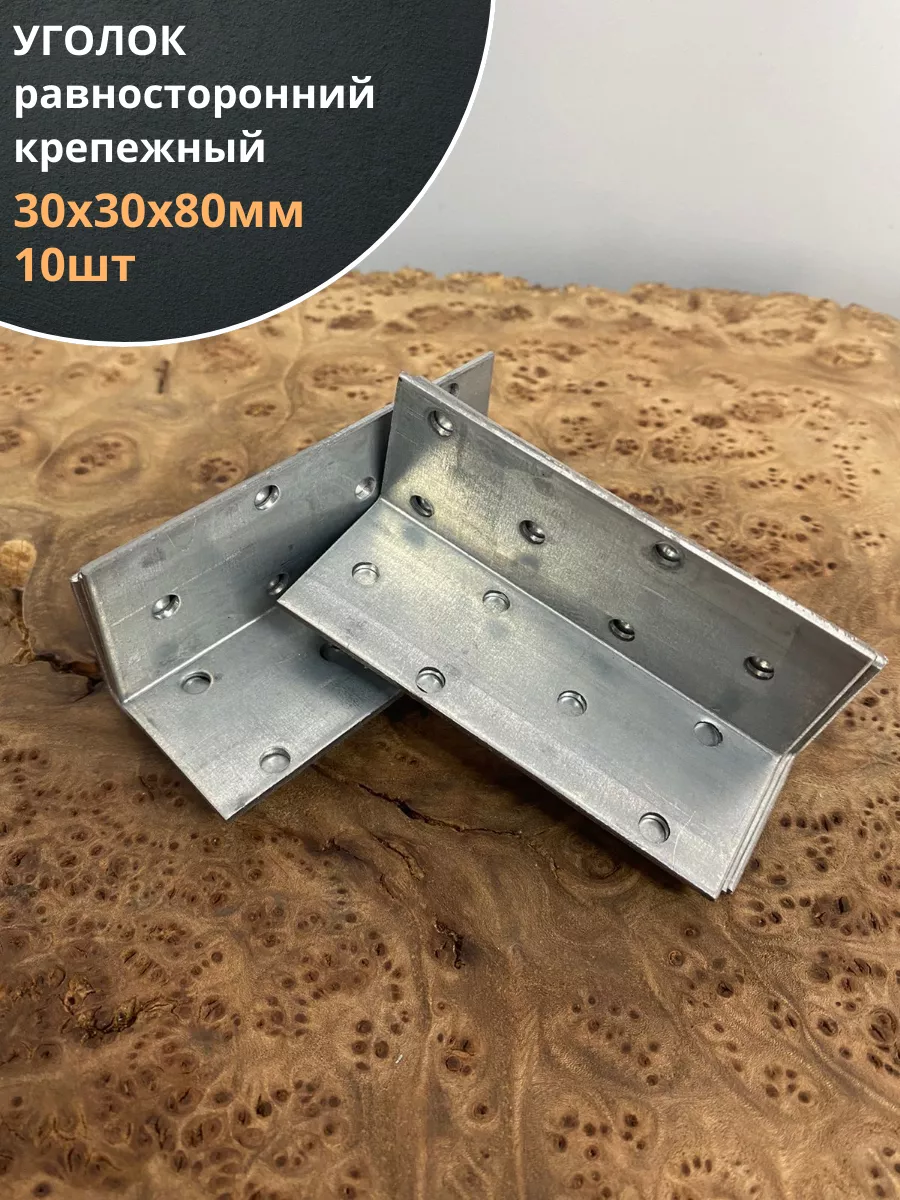 Крепежный равносторонний уголок 30х30х80 ОЦ, 10 шт.