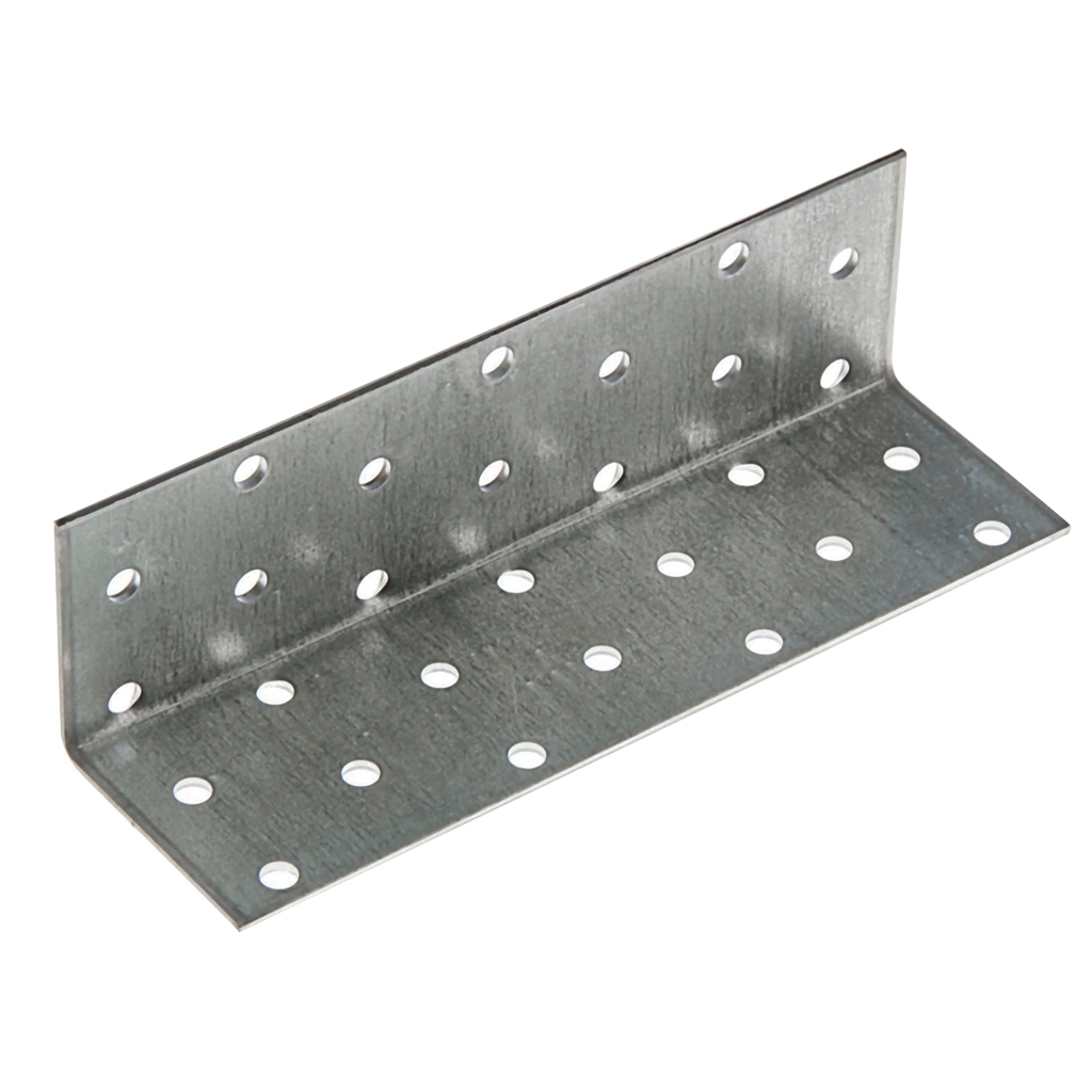 Равносторонний перфорированный уголок представляет собой стальную пластину, изогнутую под углом 90°, с отверстиями одинакового диаметра под многоточечный монтаж с помощью саморезов и гвоздей. Применяется в мебельном производстве, для соединения деревянных конструкций между собой и к основанию из дерева и металла, может использоваться для крепления балок, монтажа нагруженных несущих элементов из массивного бруса. Изготовлен из конструкционной стали с цинковым покрытием, обеспечивающим защиту от коррозии.