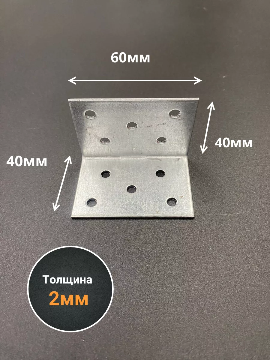 Крепежный равносторонний уголок 40х40х60 ОЦ, 10 шт.